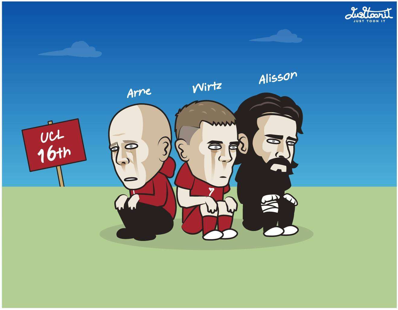 利物浦两连败加拉塔萨雷1-0战胜利物浦利物浦队昨晚在欧冠联赛中的表现阿利松·贝克尔受伤泰国艺术家KaewJusttoonit的漫画作品。